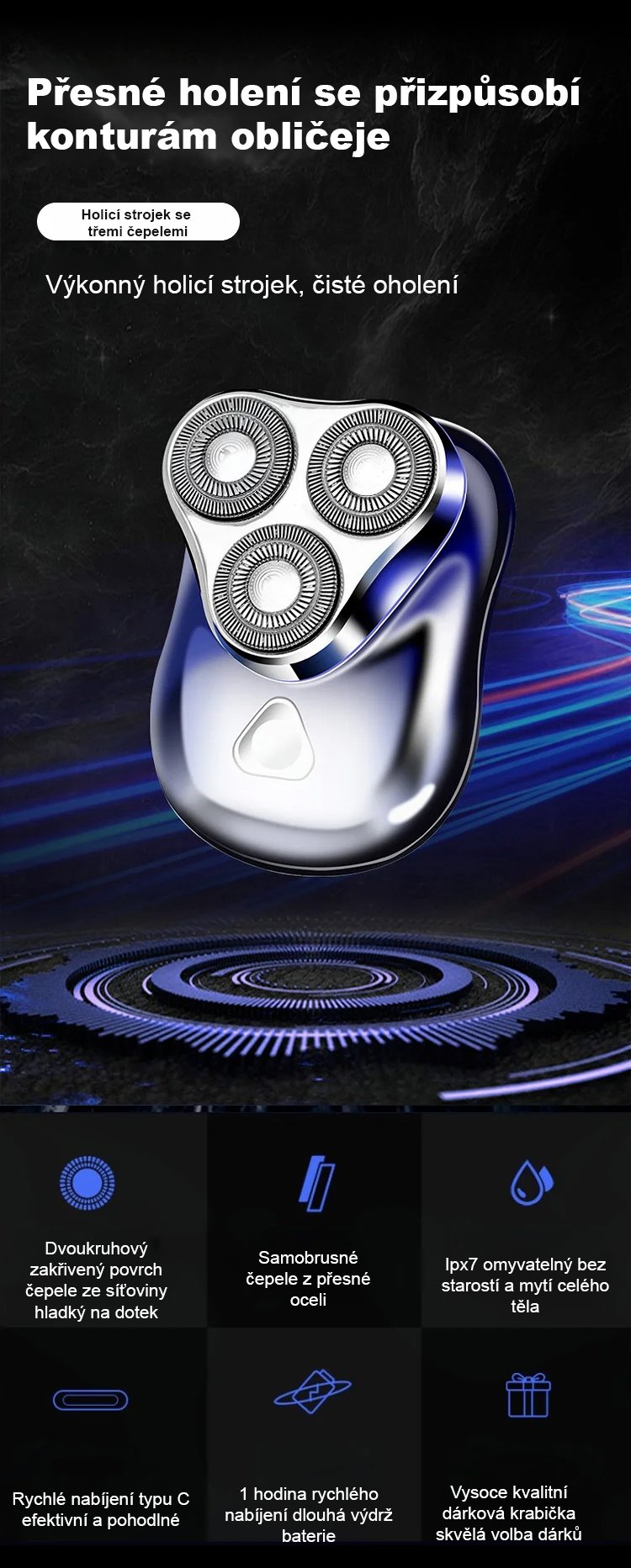 Neškodí pokožce, nezanechává strniště, je lehký a přenosný a je v prodeji po omezenou dobu